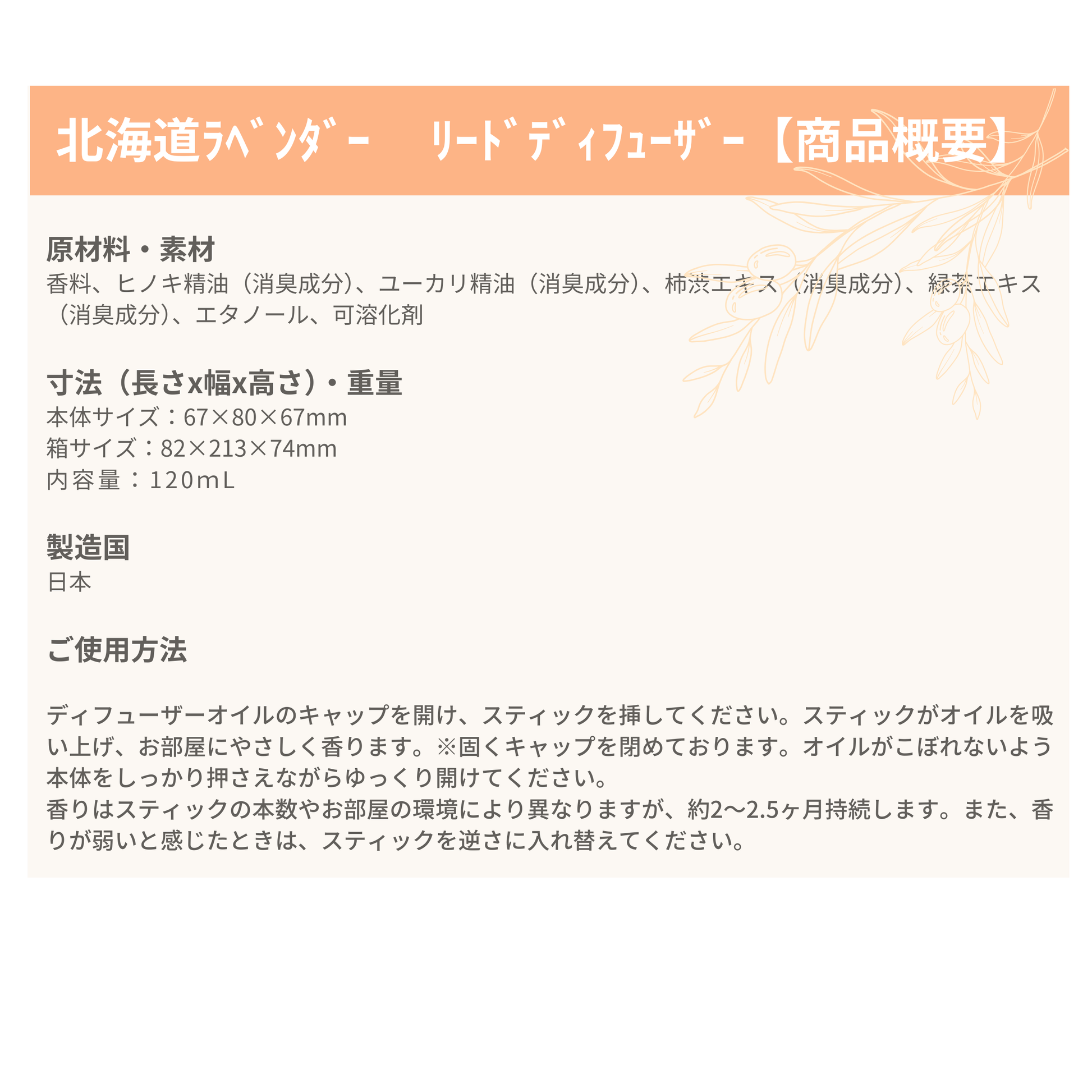 リードディフューザー ≪北海道ラベンダー≫