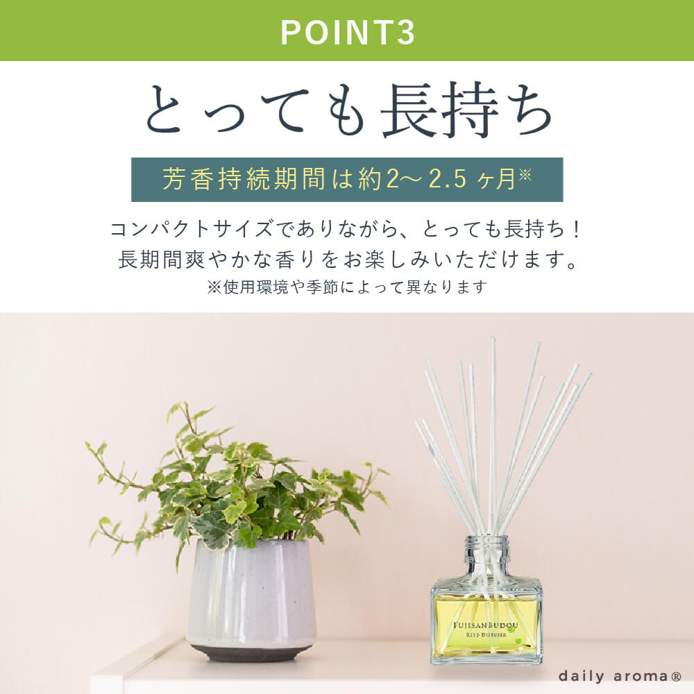 置き場所を選ばないコンパクトサイズでも香り長持ち。